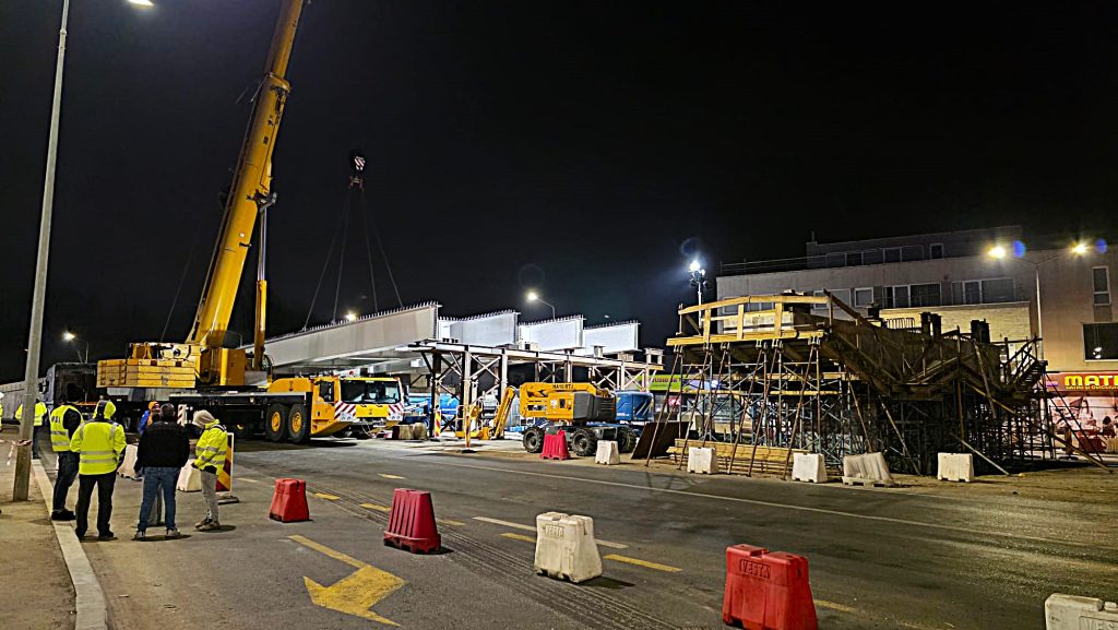 Lucrările au început vineri seară și vor continua în serile următoare, mai ales pe timpul nopții, atunci când traficul este redus, iar utilajele de mare capacitate utilizate să poată fi manevrate în condiții de siguranță. Situația va fi similară și în weekendurile ce urmează, astfel încât, până la sfârșitul lunii aprilie, constructorii să poată aduce în șantier și următoarele elemente (așa-numitele predale) ale structurii ce va susține calea de rulare a pasajului.